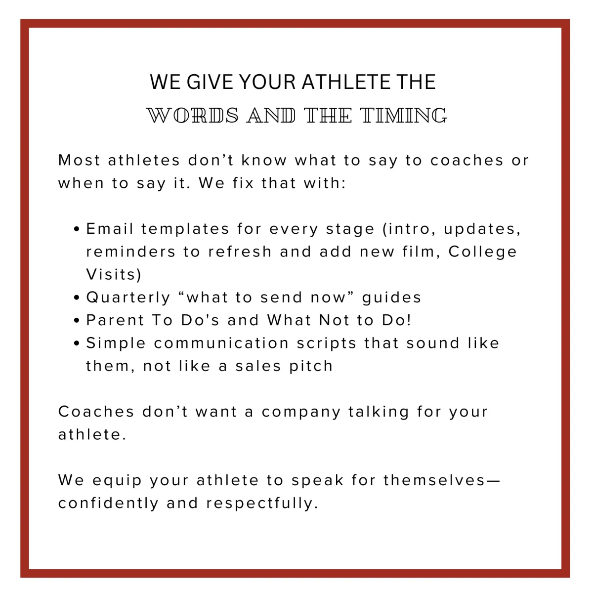 Parents aren’t left out, either. We provide parent guidelines on posting, tagging, and commenting so the whole family is aligned with a coach-ready image, not accidentally working against it.